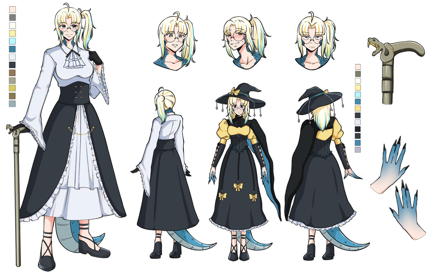 jane spent her childhood learning magic in secret, leading to her transformation into the basilisk, king of snakes! she now runs an all-year festival called TearFest w/ her mascots, daughter, & friends!